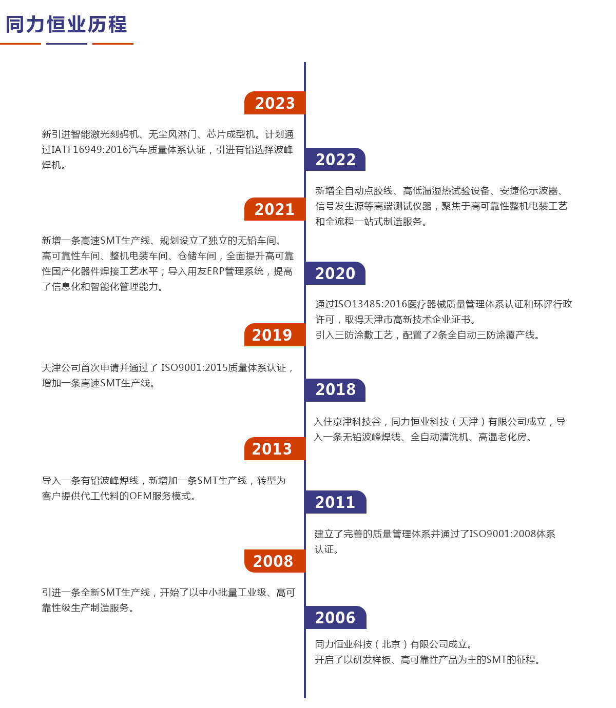 同力恒業(yè)科技成立于2006年,專(zhuān)業(yè)從事電子制造服務(wù)(EMS),專(zhuān)注于為客戶(hù)提供產(chǎn)品開(kāi)發(fā)、工藝設(shè)計(jì)、物料配套、精密貼裝、插件焊接、三防涂敷、整機(jī)電裝、測(cè)試?yán)匣约鞍b運(yùn)輸、售后維修等整個(gè)供應(yīng)鏈解決方案。公司定位于高可靠性及中高端產(chǎn)品電子制造服務(wù),在通訊導(dǎo)航、儀器儀表、醫(yī)療設(shè)備、汽車(chē)電子等領(lǐng)域具有豐富的一站式制造服務(wù)經(jīng)驗(yàn)。